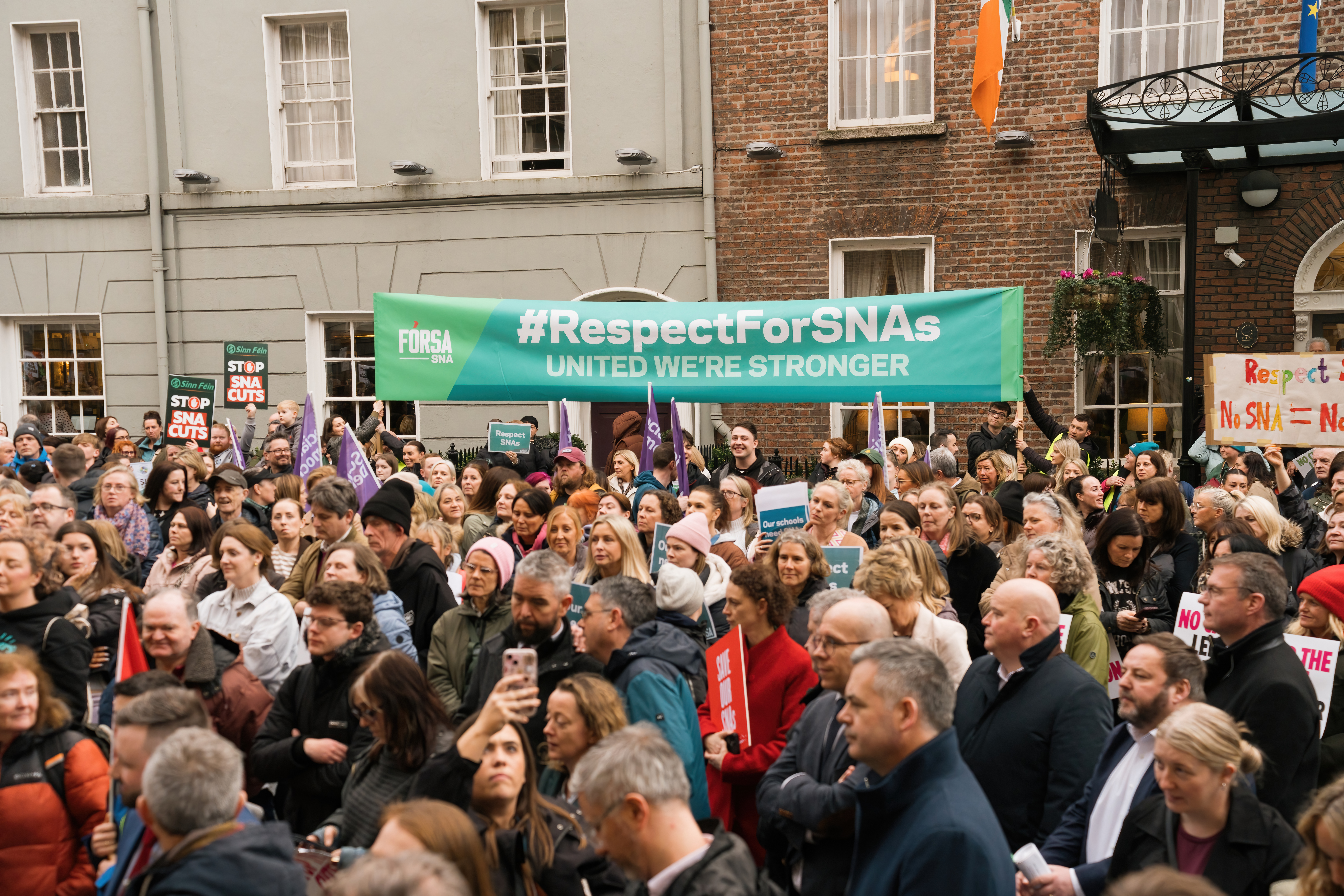 The protests followed ten days of uncertainty over the review of Special Needs Assistant (SNA) provision in mainstream schools, with the Government confirming on Monday night that there will be no reductions to SNAs for the next school year.