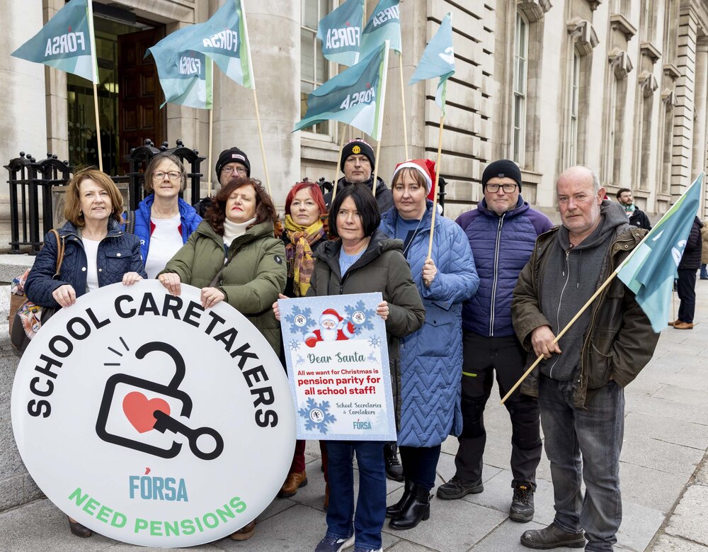 This is the latest phase in the ongoing campaign. Back in December, Fórsa school secretaries and caretakers brought their pension parity campaign directly to the Department of Public Expenditure and Reform (DPER).
