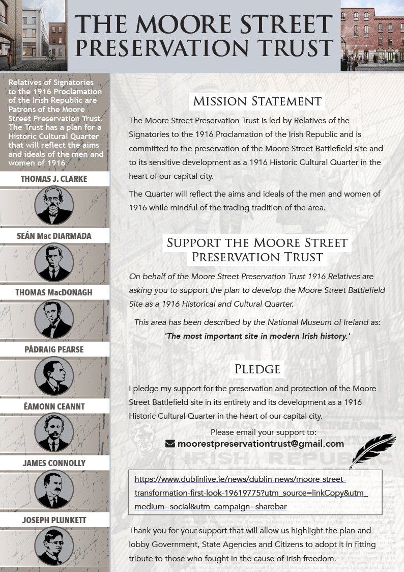 The Moore Street Trust hopes that regeneration plans will become a major heritage project, and will reverse decades of neglect and provide future regeneration to the north side of the city.