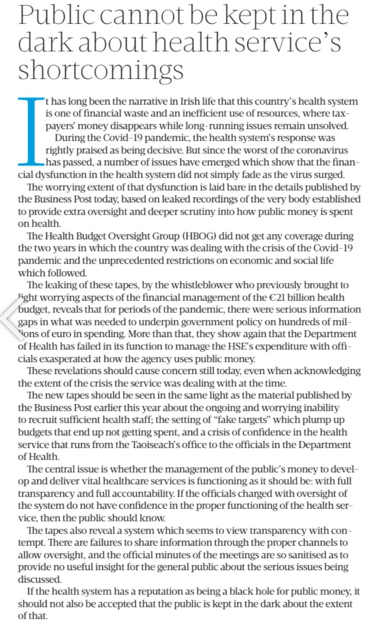 The Business Post had another front page scoop on a significant HSE overspend on PPE. The paper's editorial comments.