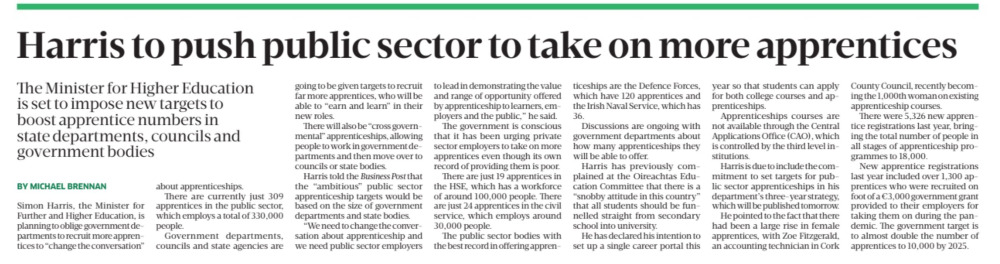 Elsewhere, the Irish Times reports this morning that a Government commitment to extend paid parents leave from two weeks to five weeks will become operational next month. On Saturday RTE's Education correspondent Emma O'Kelly wrote about schools re-opening with a reference to Fórsa's successful push for medical grade facemasks for SNAs.