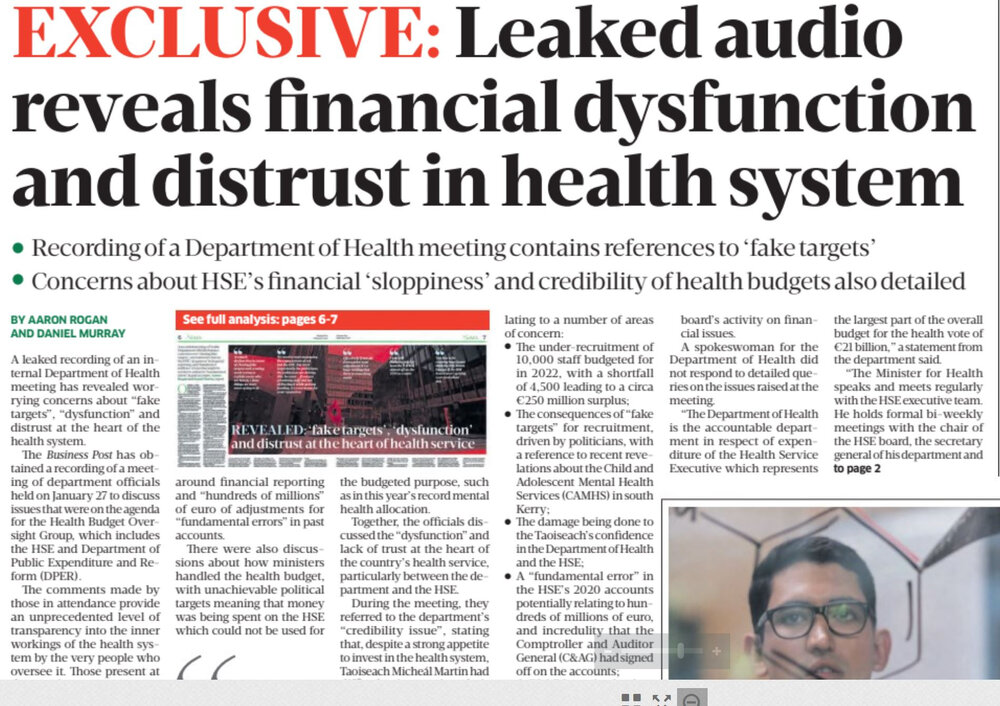 The HSE meanwhile has refuted claims it has "fake targets" for recruiting, and that weekend media reports about financial oversight contain a "serious slur" on staff. The claims were part of a lengthy front page report in the Business Post yesterday.
