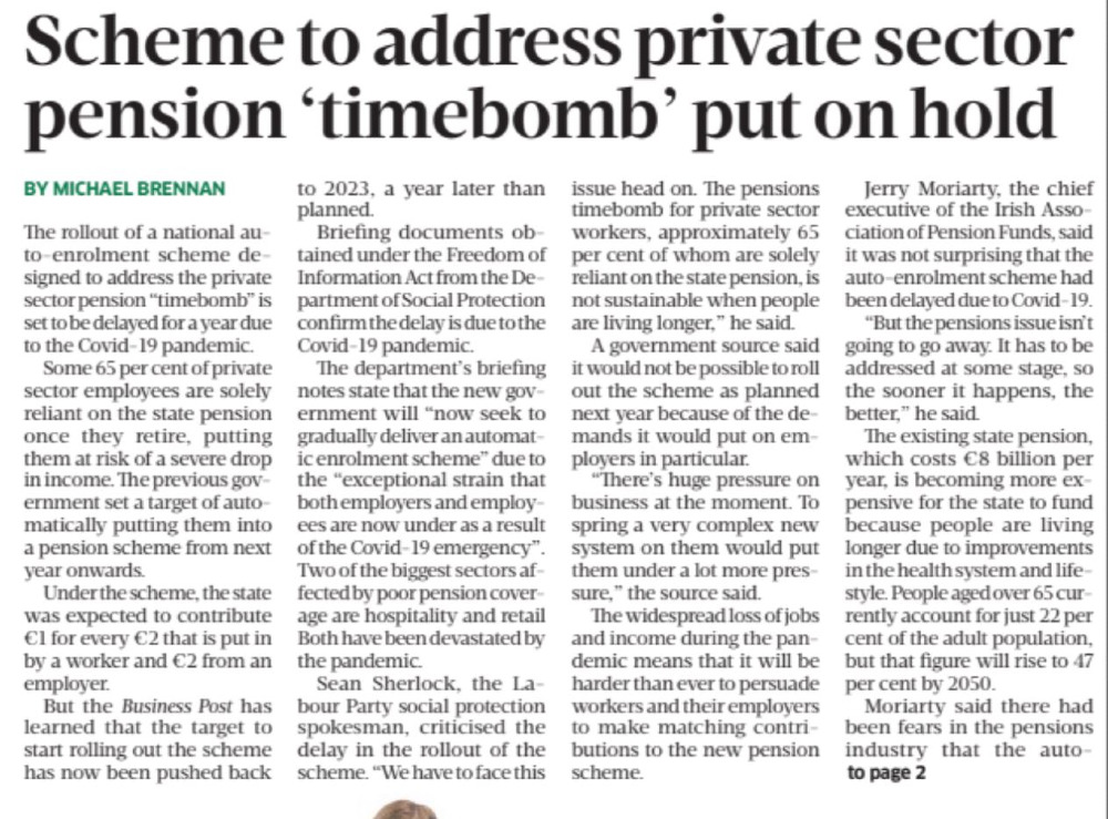 The Indo reports today that a new benefit will be announced today for retirees over the age of 65, which means they will no longer have to sign on to bridge the gap until they can claim the State pension.