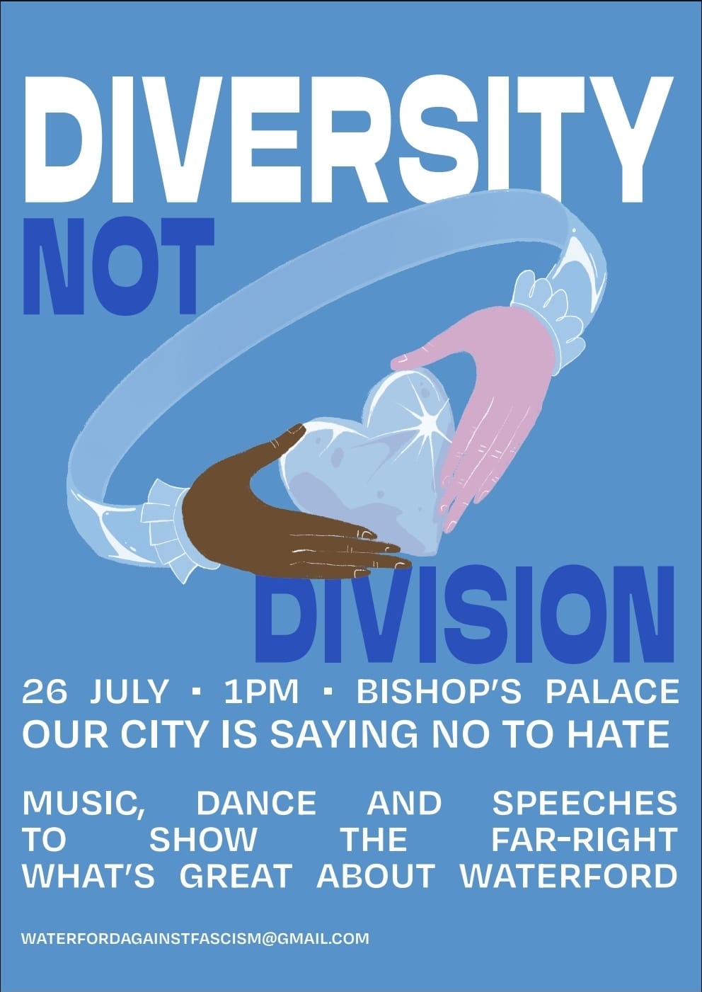 WCAF said, "Together, we are organising a peaceful, positive, family-friendly gathering in Waterford City on Saturday, July 26th to stand against the rise of far-right extremism, disinformation, and scapegoating in our communities."